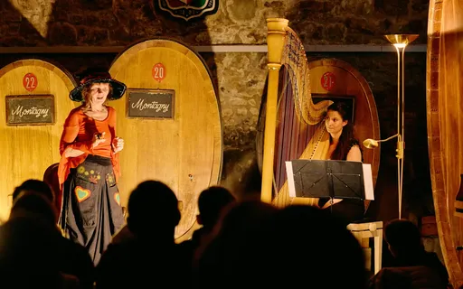 La harpe de Diane Pauvert dialogue avec les récits de Nathalie Marion pour créer un moment intime et poétique. Né en septembre 2023 lors d’une création aux Anciens Abattoirs de Payerne, le projet a poursuivi sa route avec l’envie des deux artistes d’explorer d’autres univers en se produisant au Poulpe Festival 2024 (Payerne).